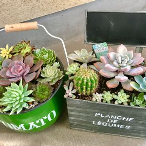 購入品とじゃんけんで貰ったozco鉢~✨ お気に入りのgemmulaさんRaslmさんをどーん!♥ んああぁぁぁあ可愛すぎ♥ 久々リメ鉢作りに火がついたー✌私も作ろうっと!