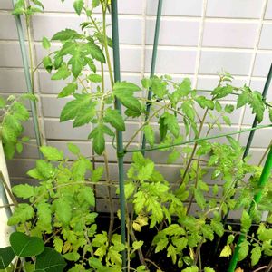 210706 フルティカ🍅#9 いよいよ支柱で誘引に入ります。 背が高くなるので、寄り道してもらわないと。 プランター内、詰め過ぎたかもしれません(この時11株。間引きで捨てられなかった😅) →このプランターなら3株。多くても5株でした。