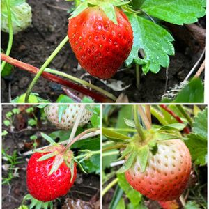 いちご🍓🍓🍓 初物3個収穫✌️ 3,4枚目 初開花のサツキピンク🩷🩷 とサラサドウダンツツジ 5枚目 満開のエビネ