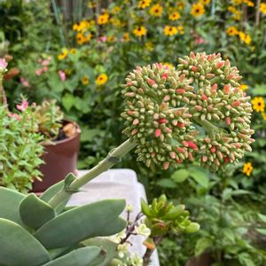 こんばんは♡ 関東も今日梅雨明け宣言しました。 急に暑くなり、やっと本格的な夏到来です💦 今日から8月ですね〜今月もよろしくお願いします😊 クラッスラ神刀🌵 傾げていた首が上がって来ましたよ。 後ろ姿はまるでブロッコリー🥦 ポツポツオレンジ色🧡の蕾が色づき初めています。あともう少ししたら開花ですね〜 始めのサイズは一番小型の多肉植物のコーナーから選びました。今では寄せ植えの中でも大きく育ち初めて花が咲きます🧡