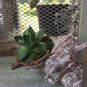 貝殻の陶器に、多肉植物のカット苗を植えてみました♡ 上手く根っこ生えてくれるといいなぁ(≧∇≦*)✨