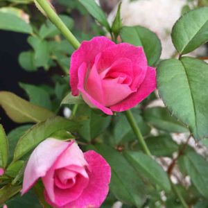 『バラの新芽採り』 全国的に梅雨明けしましたね🌤 夏本番、みなさま体調にご自愛ください🍀 今朝は、陽が上がらないうちにと久しぶりにお庭に出て散策🌹 雨のおかげで、たくさんの新芽が出ていました。 シュートを伸ばすために、可哀想でしたが〝ポキポキッ〟と新芽採り🌱 🎵…おおきくな〜あれ🌹