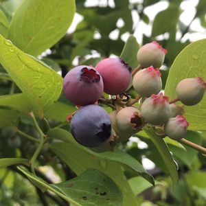 雨が続いております☂️ ブルーベリーは、色が付いてきました