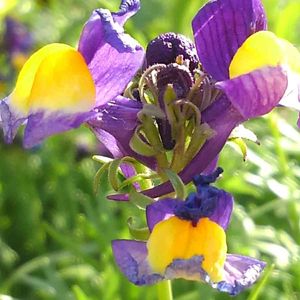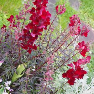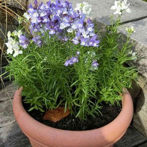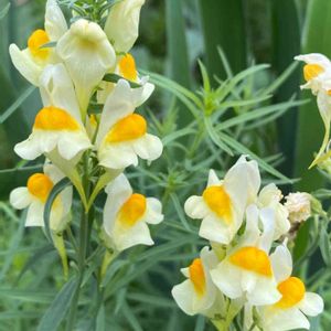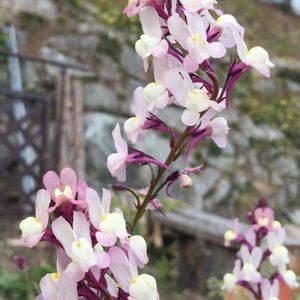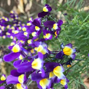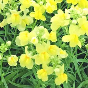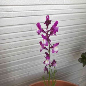 リナリアが穂先に小さな花をたくさん咲かせています。 別名ヒメキンギヨソウ(姫金魚草)と呼ばれているのは、金魚草の花に似て金魚草を小さくしたような形からです。 見た目の繊細さとは異なりとても丈夫で、冬から5月頃まで花を楽しめます。 地中海沿岸ほか原産。 オオバコ科リナリア属の1年草。