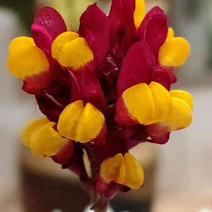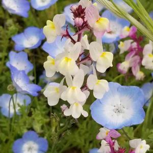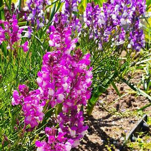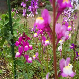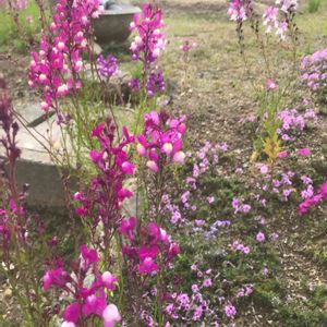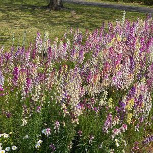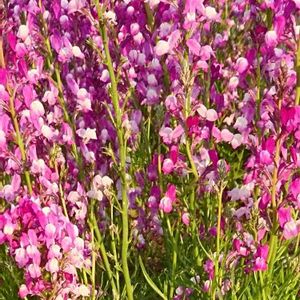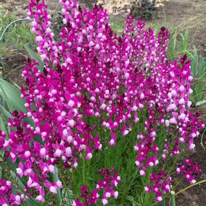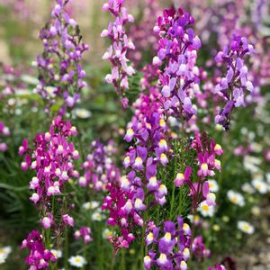 金魚草を小さくしたような花から、姫金魚草 茎先に穂状の総状花序(柄のある花が花茎に均等につく)を出す 赤、ピンク、黄、白、青、紅紫など多彩な色の唇形の花をたくさんつける 葉は幅の狭い披針形で、互い違いに生える