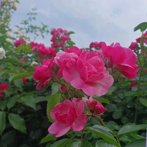 ツルバラ・アンジェラ(学名: Rosaceae Rosa 'Angela' 英名: Angela)の花🌺🌿🌺 アンジェラは、濃いバラ色の中輪、半八重のカップ咲きのつるバラです。 アンジェラは、濃いピンク色の花をびっしりと房咲きにする圧倒的なボリューム感のあるとっても美しいバラです。 圧巻の美しいバラをお楽しみください。 🌹🌿🌹