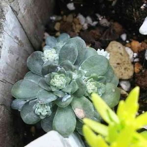 今日園芸店さんの寄せ植えに白雪ミセバヤらしきもののお花!先日投稿した私のは花ではないかもしれませんρ(・・、)手前の黄色いのがそうではないでしょうか❗