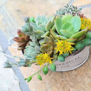 寄植えに白雪ミセバヤのお花を足してみました🥰 ちょっとごちゃっとしてますが、かわいくなったかな😘 プロリフィカのランナーが伸びてますね🤗