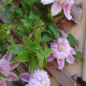 定説に勝った✌(*´罒`*)🎶 今冬1月に、ザクザク根切りをして植え替えたクレマチスのひとつ🤭 枯れるかと思っていたけれど、無事に咲きました💖 まだまだ咲き始めなので、ピンク色が出てないけれど… ピンク色の八重咲きが可愛い(´∀`*)💞 お迎え8番目のクレマチス 【 ジョセフィーヌ】 早咲大輪 パテンス系 旧枝咲き 弱剪定
