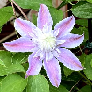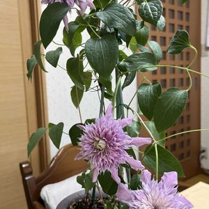 日々刻々と変化し続けているクレマチス。 今が最盛期なので再び投稿します。 1枚目、2枚めのジョセフィーヌ。 とにかく花持ちが良いです。 外側の大きな花弁が落ちても花の観賞価値が全く下がりません。 寧ろ別の豪華な花かと見紛うばかりです。 しかも色が濃くなってる気さえします。 家のクレマチスで一番生育旺盛です。 クレマチスと言ったらジョセフィーヌというのも納得です☺️ 3枚目、4枚目の水面の妖精。 水色ではないものの今、一番見ごたえがあります。 色も薄くなって寧ろ美しくなりました。 特有の砂目模様も繊細です。 そして花がとても立体的で作り物のように端正です。 中央の花弁の重なりから生まれる陰影が本当に美しく惹き込まれてしまいます。 家では一番葉が小さく花もそこまで大きく咲かなかったのですが花数も増えとても頼もしくなりました。 5枚目のフェアリーブルー。 初花より青みが増して最近残った小さな蕾から新しい花が咲きました。 これが本来のフェアリーブルーの色なのでしょう。 前回の複雑な色合いの方が好みだったのですが難しいものです😅 針状のしべも小さく咲いてしまいました。 花持ちも残念ながら良くなかったのですが、その分複雑な色合いを見せた時の豪華さはジョセフィーヌを超えていました。 すっかりクレマチスが大好きになってしまいました😅
