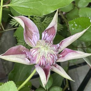 こんばんは。 🏠 クレマチス 開花してきました。 *「ジョセフィーヌ: 雨の中 開花しました。 とても魅力的なクレマチスです *「テッセン」 30年以上育てます 蕾は50以上ありそうです 毎年 色が変わってます? *「天使の首飾り」 10年以上 四季咲きです。 薔薇は「レオナルド・ダビンチ」 *「水面の妖精」 今年 三つ星モニターで 経過観察しています 蕾の期間長いわ よろしければ 「みどりのまとめ」 ご覧になって下さいね 他にも クレマチスあります 大好きな 「ダンシングスマイル」も まもなく開花です 「ダンシングスマイル」は 花持ちが良く 一カ月近く 楽しめます