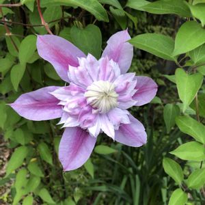 クレマチス、水面の妖精が開花しました。 春の一番花なので赤紫とも青紫ともつかない独特な花色です。 幾重にも折り重なったしべが緑がかって、ここも特徴的です。 暑くなると水色の発色が強まり、まさに「水面の妖精」になるらしいので非常に楽しみですね。 3枚目の写真は今年開花したクレマチス(左からジョセフィーヌ、水面の妖精、フェアリーブルー)を並べてみました。 何となくピンク系で似たりよったりになってしまうのではないかと思っていたのですが、それぞれ特徴が出て面白いです。