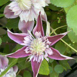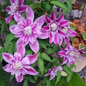 花木センターに行ってクレマチスを3鉢お迎えしました🤗我が家のクレマチスも今ツルがどんどん伸びていますが、まだお花は咲いていないので嬉しいです💖 ①ドクター・ラッペル❇️💗❇️ ②③一鉢に2種類のクレマチスが植えてありました❇️🩷💜❇️ ④これには名札が付いていませんでしたが、隣にあったよく似たお花にはジョセフィーヌと書いてありました😅❇️🩷❇️ 真ん中のおまんじゅうみたいなのがかわいいです💓