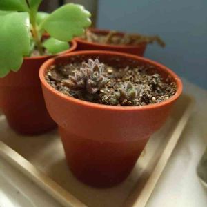 この間、枯れた花を毟ってたらポロッと2つ取れてしまったので、1号鉢に乗せておいたらどうやら根付いたようです。 室内で時々お水やりをしてました。 ここんとこ暑い寒いを繰り返してる天気で落ち着かないですね。 今夜も寒かった、、、