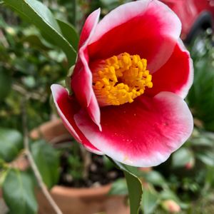 《椿・玉之浦》 ヤブ椿の突然変異種。濃紅地に白覆輪のコントラストが美しい長崎県五島の名花《玉之浦》。*日本が世界に誇る名花。 濃紅地白覆輪一重筒〜ラッパ咲中輪 咲く時期…2月〜4月 ハッと目を惹く、とても美しい椿です😊 ヤブ椿同様、やや遅めに咲き出す椿です🌸