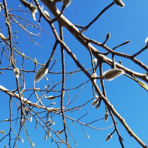 冬支度完了! 蕾です。 コブシ(辛夷) モクレン科モクレン属の落葉広葉樹。 北海道から九州まで日本全国の山林や日の当たる原野に自生する 代表的な里山の花木である 葉は秋に黄葉するものの、その期間は短い。 蕾は銀色の毛に覆われ、ふわふわです。 枝の向きに逆らわず、横向きも下向きもあるコブシの芽 よく似た、ハクモクレンの花の芽は、全部 首をもちあげて、上を向きます。 コブシの開花は3月下旬~4月上旬でソメイヨシノより早い。