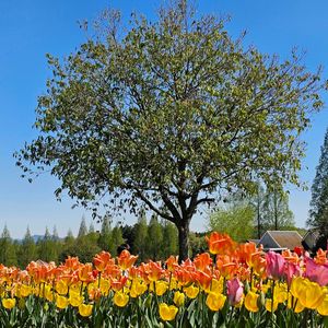 桜祭り 枝垂れ桜が見頃でした。 チューリップ ポツポツ咲いていました🌷 今年はどんな配色になっているのか 楽しみでーす😊
