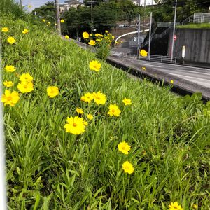 バス停🚏🚌近くの駐車場にオオキンケイギク💛🌿💛🌿💛🌿💛🌿💛 群生して咲いてます🧓😍