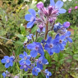 庭の花より ①アンチューサ アズレア ②レウィシア ピンク ③レウィシア ホワイト ④三尺バーベナ ⑤ムーミン谷のオオキンケイギクを飾って遊んで見ました