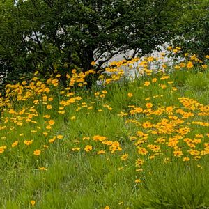 オオキンケイギク ずーっと早めに咲く黄花コスモスだと思ってました😅 テレビで特定外来植物だと知り、畑近くの川沿いで撮りました