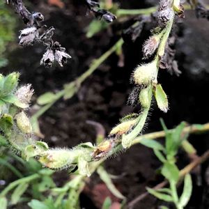 昨年ハーブガーデンで出会った花。❣️ よく見ると雄蕊雌蕊の構造が分かりにくく調べて見たものの、この画像からは構造がやはり分からず もっとしっかり撮ってくればと思っても後悔先に立たずでした。 又どこかで会えたら今度はしっかり撮って来たいと思います。(花の可愛いさに見とれ葉も撮り忘れしました) 茎には粗い毛 花は放射相称花冠は車形〜鐘形 萼片は狭三角形 花柱は1本 雄蕊5本雄蕊群は融合となっていますがよくわからず神秘的(^◇^;)