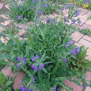 アルカネット💙が咲き始めました💙 可愛い 見た目に騙されないでね💦 有毒成分アルカロイドを含むので、食用不可の🙅♀️ハーブです。 でも、ポプリやブーケ💐にすると、アクセントになって良い感じですよ😁 根は染めの原料にもなるとのこと。 ハーブで青い小花って、ボリジがポピュラーなんですが、私はアルカネットの方が、お気に入りなんです😊 狭いガーデンだから、小ぶりなのも助かるし、この子もちょっとウブ毛は生えてるんだけど、ボリジほどボーボーじゃないし、笑😆 ボリジ好きな方はゴメンね😜同じ星型⭐️青い花だから、この2人はライバル🦹♀️かも? アルカネットって名前も、プリンセス👸っぽくて好き💕