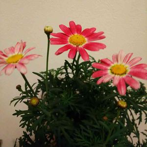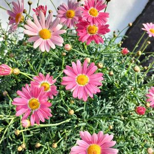 PWマーガレット ストロベリーホイップ🌸 PWアンバサダー2021(春)のお花です✨ 寒い中、花が増えてきました😆🎶 だけど片側しか咲かないんですよね…💦反対側は遅い…なんでそうなったのか😅 全体が陽に当たるよう鉢を回したりはしてたんですが🤔💦