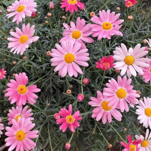 マーガレット ストロベリーホイップ 5分咲き位になりました。 様々な色に変化します。 金曜日の蕾たちに参加します。 満開になるのが楽しみです。🥰