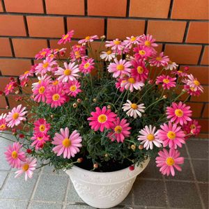 マーガレット・ストロベリーホイップ ハンギングバスケットで育ててます。 切り戻して肥料をあげると、長く咲き続けてくれます。