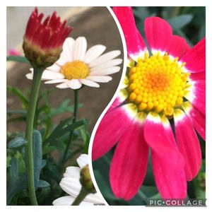 葉っぱがポロポロポロポロ大量に落ちてしまったデビーちゃん(2/28のpic)ですが、今までに 葉挿しで 6枚 根っこが出てました。 それとは別で、もう1枚 芽🌱、3枚は根っこと芽が出てました❗️ すごーい。 でも、早くに根っこが出たコらはまったく芽が出ないなぁ😢 最近、また多肉欲が抑えられず💦 今日もホームセンターから1人連れて帰りました。 そして、どうしてもネットで多肉ちゃんを見てしまい、「わぁー 欲しいなぁ」なコがまだたくさんいるのです。 今日の写真は、マーガレット ストロベリーホイップちゃん🍓 この前 ホームセンターであまりにかわいくてどうしても欲しくなり、連れて帰ったコです。 花色が順に変わるらしい。赤→ピンク→白だって。 元々は、ボンちゃん(ボン ザ マーガレット)を買うつもりでしたが、近くのホームセンターでは色が1種類しかなく、私にとってはイマイチの色だったので・・。