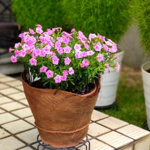 スーパーベルダブルピンクリップル😀 シュロの皮を鉢に巻き、鉢焼け防止に努めましたが、気温が高すぎです!花持ちが良くありません😱 この後、軽く切り戻ししました❗