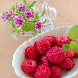 先日の剪定したダブルピンクリップル💕と昨日収穫した2回目のラズベリー(*'▽'*)🍓 と言っても1回目は5粒位(o´艸`) これから沢山取れるかな〜🎶