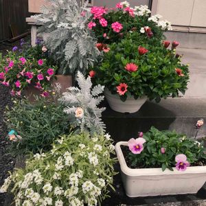 春に植えた花が増えてくれて玄関先がモリモリ🌸🌼 まだ蕾がたくさんあるからこれからも楽しみ💕