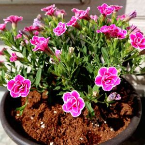 こちらもハクサン様からいただきましたスーパーベル・ダブルピンクリップル🌸 植付けから約1ヶ月、1度摘芯しましてようやく花が咲いてきました😊🎶 ……が、まだまだ花は少ないですね😅💦 さらに摘芯したほうがいいのでしょうか🧐⁉️