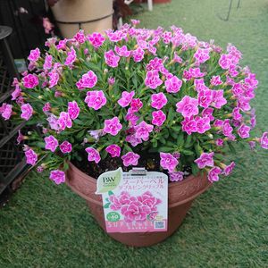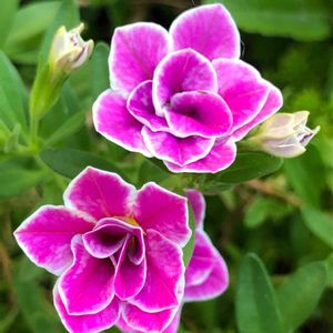 💗PWスーパーベルダブルピンクリップル この暑さの中、綺麗に咲いてる。白の縁取りがとっても可愛い❣️🤗 大きめの鉢に植え替えたいけど、作業する元気がない~🥵 明日こそは朝早くやってあげよう😅 写真撮る数分が暑い~🥵 🌼カリブラコアの花言葉は、自然な心 心が和らぐなど。
