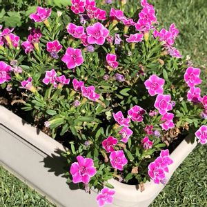 2㎝弱の小さなピンク色に白いエッジが入っています。 カリプラコア: スーパーベル ダブルピンクリップルでしょうか。 スーパーベルの八重咲き品種。 🏷ピンクワールドへようこそ 🏷毎日ピンクの日 に参加させていただきます。 ナス科 ペチュニア属 開花期: 春〜秋