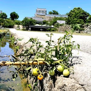 おはようございます😃 先週 GS友さんに姫路城に🍅ド根性トマトが生えているらしいと聞き 昨日見に行って来ました 検索して見た関西ローカルニュースの動画で インタビューを受けていた 🍅の発見者であるお城の清掃スタッフの方がおっしゃっていた竹の支柱も確認😂 1枚目のpicの向こうの方に西の丸が見えます お近くの方 一度見に行ってみて下さい,😄