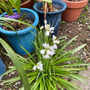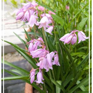 去年知り合いから分けて貰った球根 花壇に植えて余ったのを鉢にも植えたら鉢の方から咲きだしました🥰 シラー・カンパニュラータ 釣鐘水仙です ピンクのベルがとっても可愛い〜😍😍