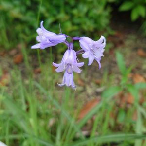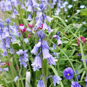 濡れてますます美しい〜🩵💜昨年ご近所さんに"増えるから💧"と いただいた球根💕 イングリッシュ ブルーベル💙とは花のつき方が違う