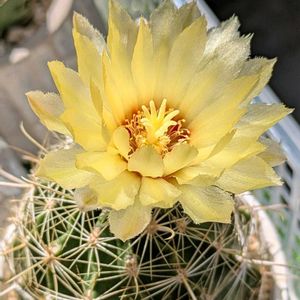 おはようございます🌞 朝からセミが煩いです😅😅😅 昼間は暑すぎて鳴きませんwww🤣 昨日、ランポウちゃんと金婚冠さん 咲きました〜🥰🥰🥰 そしてお約束の💛のお花…😆😆😆 玄関の寄せ植えの朧月さんが とても可愛い💕🥰 元の方はバラバラと分解中です😅 コチラはベランダ組 真っ白コナコナなサンアさん😍 涼しいお顔で太陽とバトってます😁 メキシコジャイアントさん 梅雨の最中、調子を崩して…😰 消えてしまうかと心配しましたが 何とか復活‼️可愛くなってます😍 🏷️2のつく日は斑入りの日 🏷️斑入り見つけ隊♪ 参加します〜🫡 昨日お迎えした うぐいすアロエさん😊 淡いグリーンと斑が涼しげです💚 トゲトゲな感じも😍😍😍 大きくな〜れ✨