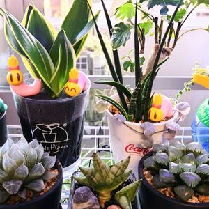 おはようございます 🌞もう暑いです 🪴サンスベリア・スーパードワーフ (手前)仲間入りです 🧐ニャッキ・ピンクちゃん集合してます 😁サンスベリアは3種 チャコボール、スポンジ、土、育成です