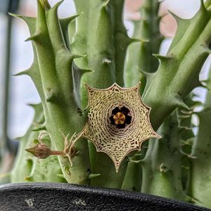 おはようございます🌞🌞🌞 今日は暑くなりそうです😰 湿度低めで、風アリでお願いしたい…😓 3鉢目のガガイモさん、開花😍😍😍 クリーム色に赤茶色のまだら…💕 小さめで臭く無いお花でした~🥰 ダルマ姫シュウレイさん チビッコ達、大成長😆😆😆 モリモリ、わちゃわちゃ、可愛いなぁ❣️ エレガンスhybさん 家族が増えて、皆んな元気🥰 外すべきか…このまま群生、イケるかな🤔 パープルヘイズさんのお花 花弁は5枚…と思っていたのですが 良く見たら6枚と7枚のお花 見つけました〜😁😁😁