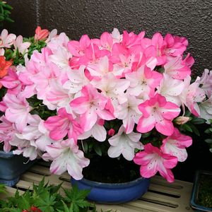 こんばんは 🌌 💮サツキ💮 今日の花なので連投です😄 さつき(白蓮)今年も咲いてくれました 👀今年は絞りが綺麗に出てませんね🙂↕️ 咲いてくれるだけ有難いですけどね👏👏 奥のもう一つはまだまだ咲きません 🙏