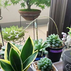 おはようございます ☀️ 🪴 断崖の女王 🪴 👀葉に白いモフモフの毛がびっしり ☺️お日様ガンガン、雨ざらしOKらしい アデニウムと一緒においてます、、 😑でも直射日光を避け半日陰にとも 蕾が大きくなってきているので 花を咲かして梅雨まで様子みよう 🏷️オケツの日 参加します 😁
