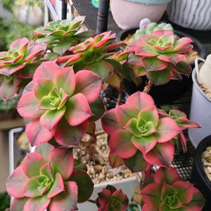 おはよう ございます ☁️ 🥝アエオニウム キウイ🥝 👀一度だけ食べたレッドキウイです😋 黄、オレンジ、赤、緑、たまに斑😅 いろんな色が楽しめますね 👏👏👏 通年ベランダ放置です 🥝