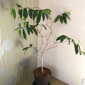 うちに来たばかりのころの、アマゾンオリーブ🫒 成長後の今の写真は、昨日くらいに投稿したのですが、室内でもぐいぐい成長しました😌