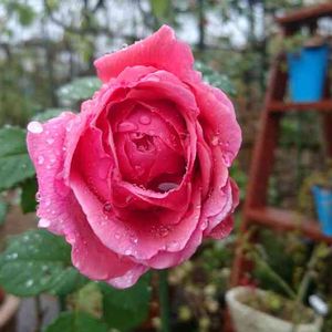 ピストルで撃たれたような たくさんの虫穴に慌てて シュー💨🐛してお守りした蕾が無事に開花😆💕🎉 プリケントさん🌹 秋薔薇スタート 台風で倒れた花台の下敷きになって、 あの時は青ざめたね~😱💦 強くたくましく育ってくれてありがとう❤️