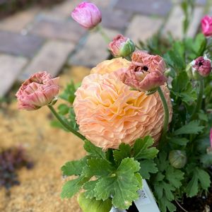 ラナンキュラス エトワール アプリコットカラーのウェーブがかかった花びらが優雅です💕