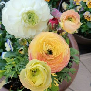 最後に記念撮影📸 ラナンキュラスもビオラも伸び伸びなので この後カット✂️しました スッキリした分お花がなくなって 寂しくもなりました💦
