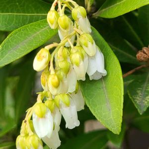 おはようございます☀️🙋♀️ 🏷️今日のお花 アセビ💠🌿 ツツジ科 散歩道🚶♀️より ①② 2022/03/31 ③ 2025/02/03 釣り鐘状の白い花が密集して咲いてます😊 葉っぱを食べると馬が酔った事から「馬酔木」と言われてます😃 今年はまだ開花を見ることが出来ませんでした😆